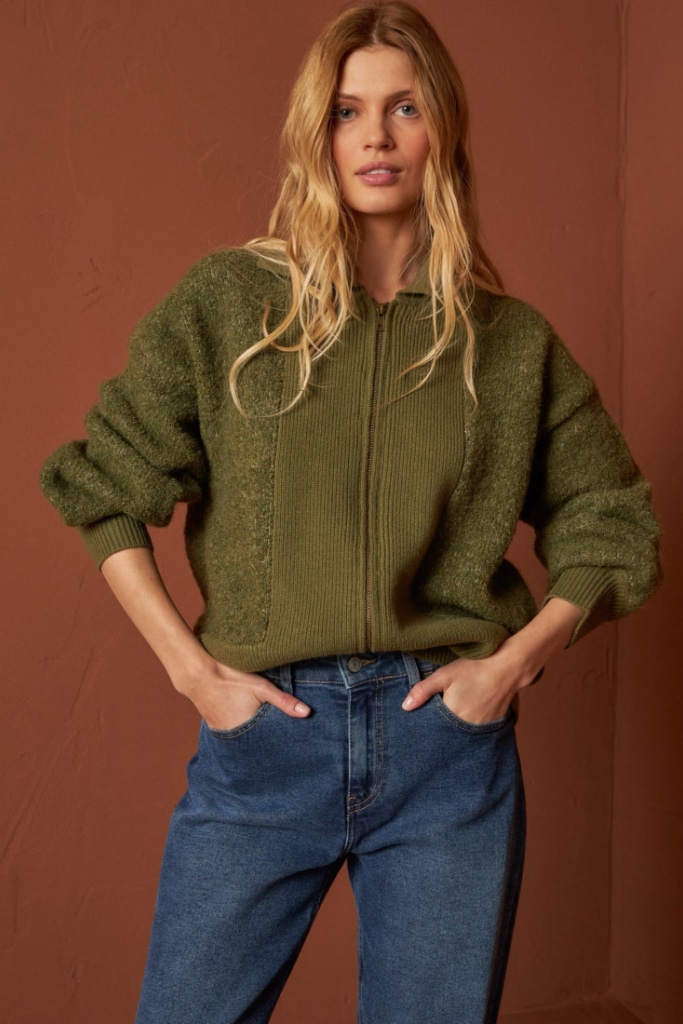 indi cold - Sveter so zipsom Militar - militar